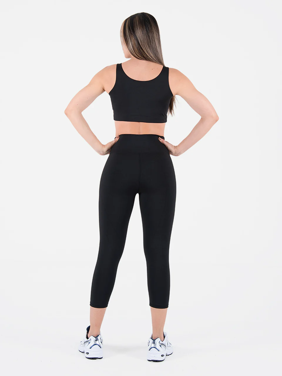 – Leggins tipo capri, fajón con control de abdomen, largo a la mitad de pantorrilla.