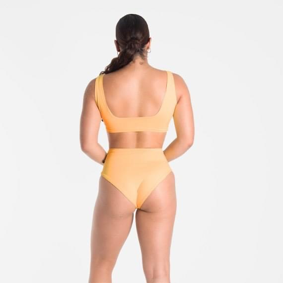 -Vestido de baño de dos piezas, con panty a la cintura y top de escotes cuadrados.